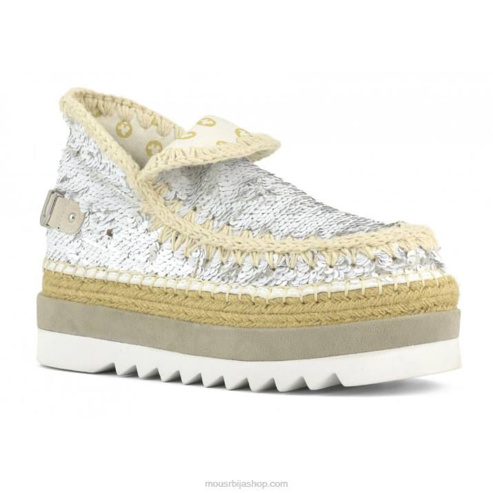 <п>наша платформа од ескимо јуте ева са свим шљокицама имаће изузетан ефекат продужења ногу на вашој силуети, па будите спремни на погледе дивљења. овај привлачан стил је ручно израђен у свим шљокицама са заштитним детаљима од памучног шава, поставом од памучног платна, великим металним логотипом, међуђоном умотаним у јуту и двобојним ева потплатом за удобност и издржљивост. висина 16цм.